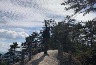 前往木王国家森林公园景区的路上,已经可以看到很多美景了,山里的叶子已经变色,色彩斑斓。加上蓝天白云,真正是一种视觉上的享受。沿途的景色已经很不错了,遗憾的是,景区并没有在有美景的地方修建临时停车的地方,想要看景,只能把车停在路边。沿山道上行,即可登临跑马梁,梁顶视野开阔,远处山峦起伏,大气磅礴。苍松与远山相迎,使人心旷神