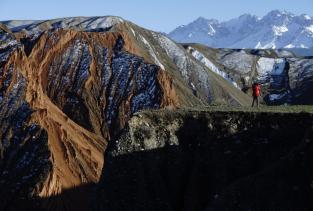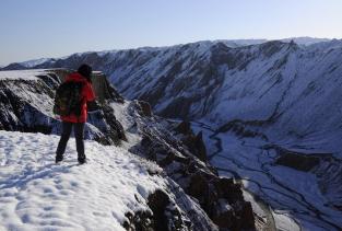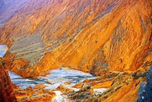 三月去安集海大峡谷,喜欢拍照的可以去哦,目前这个景点免费,没有班车前往,从奎屯打车去120元,会还价的可以再杀杀价,应该还有还价的余地, 大峡谷很深,落差200多米,我去的时候遇上前一晚下雪,峡谷一片晶莹,背风没有积雪处露出红色土层,当中午化雪后又是另一番景象,应该到6月份草皮绿了以后色彩就更丰富了,现在山坡上长着散发着特殊香味的小草,也不知道叫什么名称。