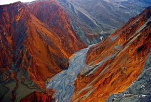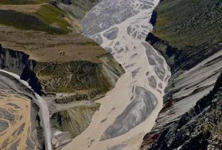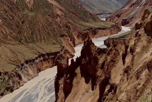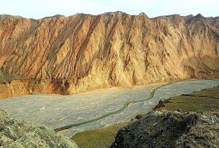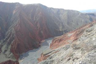 安集海大峡谷河流上游为巴间沟,发源于依连哈比尕山主峰,在通古特附近冲出天山峡谷,如脱僵之马一泻千里,从而在天山北坡下形成了规模宏大的山前冲击扇