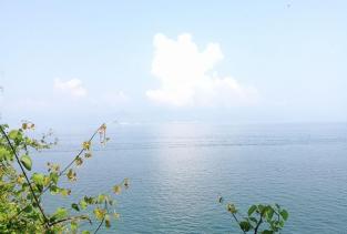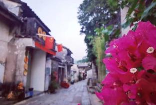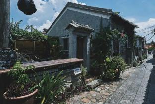 大鹏所城原是古代军事堡垒,南北各有一个城墙头,城墙之间是一条窄窄的干道,密集分布着很多院落,士兵家宅和将军府院宅坐落其中,登到南城墙上可以看到不远处的海。 现在这里看上去更像一片古朴的村落建筑群,古朴到砖石之间花花草草的开放都显得很热烈。 将军府免费参观,容易走过…跟其他院落外观上没有很大区别,进去却发现里面有多个不同功能分区的房间套间。 广场那里徐徐微风扫过,是不错的休息地,有清水师船的科普黑白画,有一整排像仓库的门院。 从北城门走到南城门一路往南就到了海边,蓝天白云下遥看对面的山丘群,不失为一处美丽的