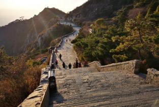泰山号称五岳之首,最经典的爬山方式是途步从红门开始,最难走的是十八盘,全是台阶,到了紧十八盘,抬头可见南天门,可是这段一般都要走个把小时,通过了南天门,回望全山,一种重新活过来的洗礼。