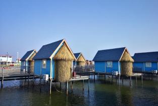 乐亭月坨岛离北京不远,周末可以去玩玩,从北京开车三多个小时可到。自驾车需要停在三贝明珠码头停车场,停车20元不限时。然后买门票+船票坐船去岛上。这天气轮渡船开着空调和窗户也很闷热,好在坚持一下,二十分钟到岛上。岛上有一条美食街,海鲜烧烤为主,还有不同的酒店,特色还是小木屋,周末价格比较贵,面积不大。酒店有小的游泳池和温泉池,海边浴场可以游泳,人不是很多,海水还算干净。晚上等都亮了,天也凉快点了,各个饭店坐满了人,喝啤酒吃海鲜,夜景很美。