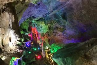清明节去的时候隐水洞超多人,排了两小时才进去,进去后发现里面很大,有一段路程坐船,做完船再走,走完了坐火车,做完了小火车再走,然后就出门了,全程5.7公里左右,可以玩一个半小时,风景基本大同小异,景色完全靠灯光和想象,总体来说还是不错的