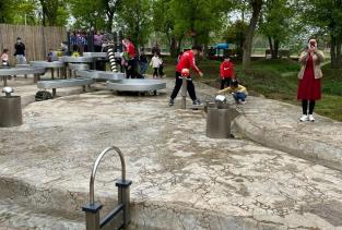 武汉周末带娃自驾的好去处桃源集亲子小镇:因为疫情期间,宝宝想出去玩,但又不知道去哪,就去了比较近的桃园集亲子小镇,因为都是室外的,要放心些,宝宝也喜欢过来玩。户外项目比较安全,进园区先消毒测温扫健康码才能入园,可以领一件游园手册免得走丢了,里面挺大的。户外玩球、玩水、水枪和泡泡浴,宝贝玩的很开心,很多家长也参加了活动,然后室内是老师带着小朋友们跳舞。
