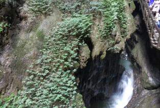 龙水峡地缝非常的漂亮,从头到底都是一条路走到底,大概一个小时的时间,从地缝中看大山和流水感觉非常的好,超级震撼!值得来!记得带雨伞,穿防滑的运动鞋。