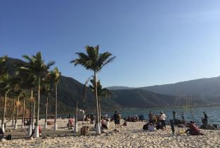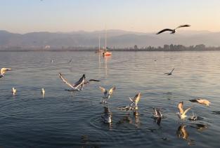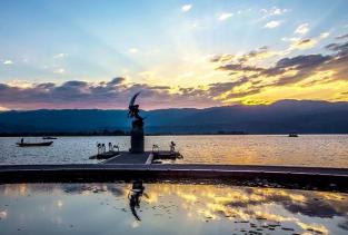 邛海是免费的一个公园,但是风景很好,特别是赶在晚上八点左右去看日出,映照着月亮女神雕像,加上旁边成群飞翔的海鸥,景色美得如人间仙境。邛海边上吃过烤鱼,味道不错,游船收费也不贵。