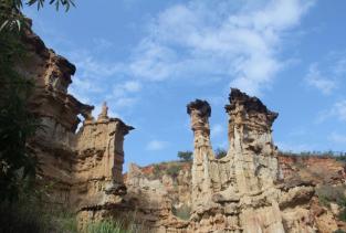 元谋土林这里土林高大挺拔,造型多似古代宫庭殿堂,宏伟壮丽。“元帅府”则以动物造型为特色,这里的土柱形态酷似各种飞禽走兽,惟妙惟肖。而“古堡幽情”的景观色彩丰富,以赤、褐、黑三色土帽盖顶而著称。