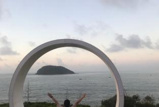 漳州火山岛真是个粉嫩粉嫩的岛,,建议找会拍照的好友一起,粉色迷宫里,每个角度每个转身都是景, 先到了彩虹山,彩虹山顶是泡泡屋,再往右手边走就是迷宫+ 十八景,喜欢拍照的走这边,