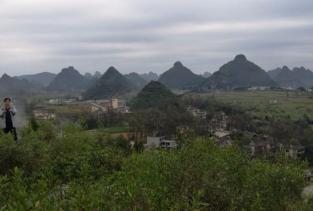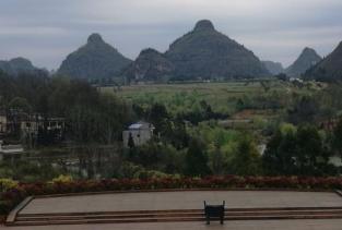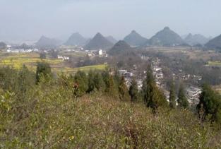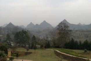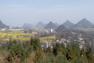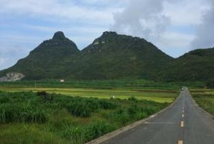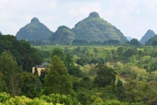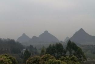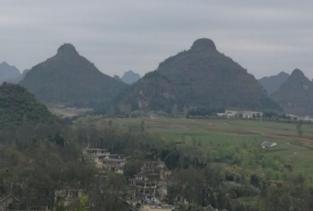 双玉峰当地人称为双乳峰,其距离贞丰县城9公里,占地40公顷,海拔1265.8米,相对高度261.8 多米。景区内有两座兀立的石峰,形同女性丰满的双乳,故称“双乳峰”,当地的布依族人又称其为“圣母峰”。“双乳峰”处于贞丰——贵阳的公路干线上,全是柏油路,非常好走。不同的角度欣赏双乳峰,会有不同的感觉,也会呈现出不同的景观,正如那句话——“横看成岭侧成峰,远近高低各不同”。从三岔河东南面的观峰亭看,双乳峰朦胧羞涩、丰腴协调、健壮妩媚、形态逼真,酷似年轻少女青春期挺拔的双乳。从观峰亭往前一里左右,近看则像是中年