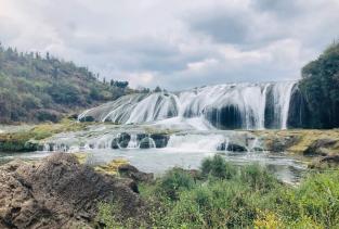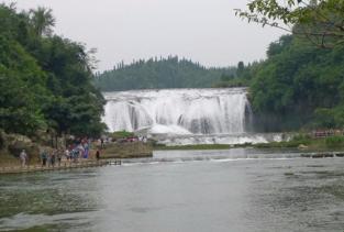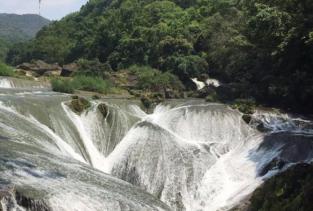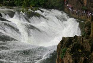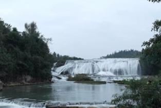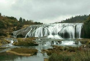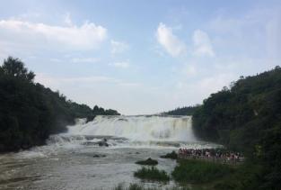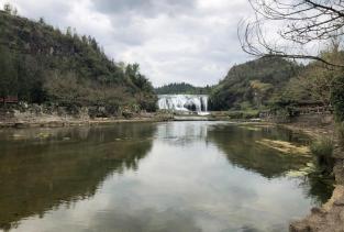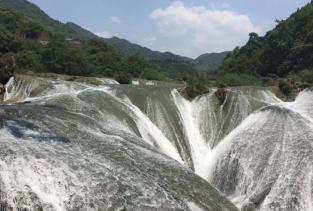 陡坡塘瀑布在黄果树瀑布的上游,从这里走到黄果树大瀑布大概要半小时,这里最大的特色就是那个西游记中取景地那个瀑布,非常的经典。这里没有黄果树大瀑布的高大,却更加气势恢弘,正面宽一百多米,高21米