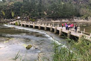 陡坡塘瀑布这个景点是整个黄果树景区最小的一个景点,游览30分钟左右就可以出来了,但我们足足玩了1小时。虽然小,但是位于黄果树瀑布上游1公里处的陡坡塘景区,是黄果树瀑布群中瀑顶最宽的瀑布。在瀑布的顶端有一个巨大溶潭,丰水期时,当瀑布在经过钙化滩坝上时,会发出“轰隆.轰隆”的吼声。一进门就会有唐僧师徒取经的雕塑,右侧走路5分钟就能看见陡坡塘瀑布了。西游记片尾曲里面那个师徒走在瀑布上的就是在这里取的景。