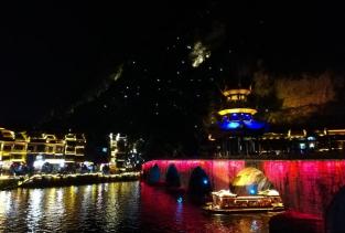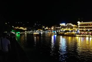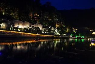 祝圣桥是镇远古城内横跨舞阳河的一座多孔石桥,是去青龙洞的必经之路。桥面较宽,但目前只作为步行使用。桥上的三层复檐亭是舞阳河上的标志性建筑。不论从哪个角度看,祝圣桥都非常美观,夜晚的祝圣桥在灯光的照射下,非常漂亮。
