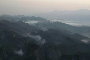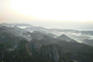 八角寨位于桂林资源县,清晨,厚厚的浓雾浩瀚无际,远连天涯,绕峰游戈的山峦与弥弥漫漫的白雾时分时合,白雾成浪,一浪高过一浪,云海中的山峰或起或伏,若隐若现,旭日东升,泼洒万缕金光,映得天红如血,待群峰突云破雾时,云涌峰浮,如千帆竞渡。