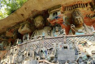 1.大足石刻大足石刻,位于重庆市大足县境内。大足石刻始于晚唐,历经五代而盛于两宋,是中国晚期石窟艺术中的忧秀代表。石窟多达76处,共有