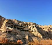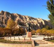 新疆克孜尔千佛洞位于新疆自治区拜城县东南约60公里处。克孜尔是维吾尔语的译音,是"红色"的意思。洞窟开凿在木札提河北岸明屋达格山的峭壁之间。现存洞窟有编号的有236窟,其中的洞窟形制较为完整、壁画遗存较多的约占三分之一。根据洞窟的形制特点、