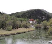 冲古寺在仙乃日雪峰山脚,海拔3880米。原来的寺院损毁严重,现在是重建的。在冲古寺是冲古寺草甸,这里有草地,小河、树林、山峰等,自然景色绮丽,如同仙境。从这里可以去仙乃日,或者去诺绒牛场。这里距离景交车上下车点扎灌崩距离约0.5公里,徒步不
