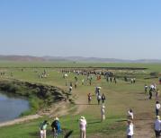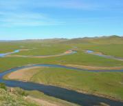 莫日格勒河是一条河道十分狭窄,但却极度弯曲的河流.如果从空中俯瞰,蜿蜿蜒蜒的河水,就象是一条被劲风舞动着的蔚蓝色绸带,悠然飘落在碧绿如玉平坦无垠的大草原上,一会儿东行,一会儿西走,一会儿南奔,一会儿北进,其弯曲程度,用九曲十八弯来形容是远远