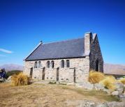 新西兰好牧羊人教堂,到了好牧羊人教堂,这里算是比较著名的景点,人稍微多了一点,不过和中国比起来,真的已经算人很少了!这个独特的教堂坐落于新西兰南岛特卡波湖岸边,背景是辽阔的山水风景和巍峨的高山,风景如画。