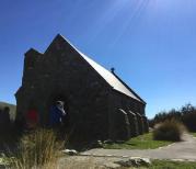 牧羊人教堂位于特卡波镇特卡波湖边上,位置极好,无论从哪个角度看教堂拍照都不错,非常漂亮!教堂不大,只能祈祷不能拍照,之所以出名,大概是因为是星空极好的陪衬。晚上聚集在这里拍摄星空的人很多。教堂正面的玻璃窗正好框住了蔚蓝的湖水,起伏的山峦,一