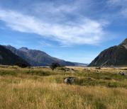 库克山国家公园位于南岛中部,风景极佳,今年去时正赶上下雨,云雾中开到山下,天逐渐放晴,库克山真容逐渐显露出来,清新的空气,鲜绿的青草,云雾缭绕在半山腰,覆盖着白雪的山峰,沿着塔斯曼步道,看到了壮观的塔斯曼冰川!