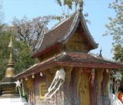 琅勃拉邦王宫博物馆建于1904年,1975年后老挝废除君主制,王宫改成了博物馆。星期二不开门,中午休息,下午4:30以后不售票。位于洋人街上,浦西山对面。博物馆需要收门票3万,进入需要脱鞋,对着装也有要求,手机.相机.包包均要寄存。