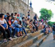 普西山在琅勃拉古城中心,是琅勃拉邦市区的最高点,其实山并不是很大,爬起来也不费劲,328级台阶。山顶有金色顶尖的普西塔,山麓有王宫。在山顶上可以看到整个琅勃拉邦古城360度的景色。落日的时候可以攀登到山上的寺庙看绝佳的夕阳。