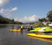 老挝万荣的南松河,每天有很多游客坐着轮胎顺着河漂流,更多的是划kayaking沿着河从上游向下游漂流。围绕在万荣周边,河道两岸风光秀丽,很适合漂流。