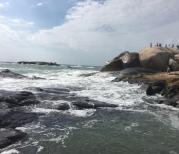 石头公园景色很美,现在也有二路公交车可以坐到石头公园了,游1是从火车站到石头公园,游2是椰子大观园绕高隆湾一圈到石头公园,目前还是免费不收门票。沿着石头公园还可以到右边的一个湾,好像那里有酒店,椰树下有大姐卖郁子,很热情地招呼游客。