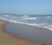 玉带滩是博鳌最具特色的一个景点之一,它是万泉河的入海口,在这里万泉河清清的河水和南海的海水相互冲击形成了一个金色的带状沙滩所以叫玉带滩。这里的沙滩非常细腻,赤着脚在上面走着非常舒服。