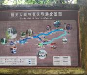 全长2.8公里,由通灵峡、念八峡及地下暗河、隧道贯通连接,沿着阶梯首先来到一个蜿蜒而下的溶洞,然后沿着小河边一直走向尽头,就看到从几十米高空垂落的水流,远看时觉得水量挺少,没有想象的壮观,不过走近后水流声越来越大,水流落下与石壁溅起的水花形