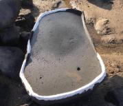 儋州千年古盐田有750亩,距今已有1200多年历史,人们就地取材,将海边大片的天然火山岩石削去一半,凿成无数浅浅石槽,有些上面还雕凿着古朴的文字,错落有致地分布镶嵌在一垄垄、一块块的盐田周围,总数达6800多槽,平时在石槽中注入经过滤后的海