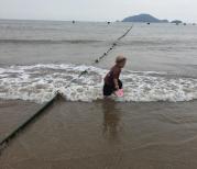 松兰山海滨浴场不错,风景很好。第一次下海,第一次在海里游泳,感觉很不错。松兰山海滨浴场分为东沙和南沙两个沙滩,东沙比较大南沙很小,只能在规定的区域内游泳,前几天台风浪比较大,东沙的游乐项目比较多,坐个太阳伞也是要收费的,海边太阳下防晒要做好