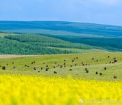 经乌线是深度探秘内蒙古最佳的自驾游线路。经乌线的风景非常秀丽,沿途都是碧绿的草原,四周山峦起伏,草原和森林交替,奇峰峻岭不断,堪称是中国最美公路。8月,经乌线旁盛开着成片成片的油菜花。它们流光溢彩,争相怒放。置身于金色的海洋中,是一种美妙无