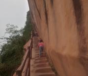 在丹霞山有左中右三条路,请走最有意思的中间那条路,能从云崖栈道上(如果右边那条路去的话最终就从云崖栈道下,将非常困难),从久久天梯下,这样是最合适的路线。不过云崖栈道和久久天梯都不适合抱婴儿者和老人攀爬。去阴元石则可以开车至长老峰景区大门,