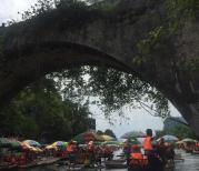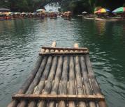 遇龙河的漂流一定要试一下,人工竹筏很有特色,就是距离很近,一个来回就10多分钟,两岸风光无限,师傅有劲划的较快,有问必答,服务良好,天气较好,一幅水墨山水图,泛舟河上,人在画中游,环境风景都比较好,去了有一种特别放松的感觉。