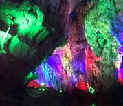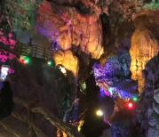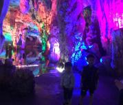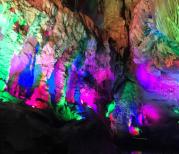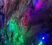 连州地下河好玩!外围是环山连绕,想不到的是其中一个山内另有乾坤。进入溶洞口,真的壮观宏伟,大叫一声还有回声荡漾。钟乳石在五光十色的灯光衬托下色彩斑斓,形态各异,有莲花状、有柱状、有人形状等,非常美观!我们是一早出发的,不是很多人!