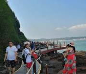 双月湾景观还是很棒,沙滩及海水的原始硬件是非常好的,沙滩极长,一望无际,水清沙白。在这里还可以看到夕阳西下,不过观景台的人很多。就是周边的酒店及大排档极大影响了沙滩卫生,管理不到位,希望有所加强。