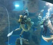 海洋之窗的海底动物种类蛮多的,馆内有目前世界上最大最全的活体珊瑚展示缸,还有钓大乌龟,个人感觉挺好玩的,里面还有很大的一个船模型。但是我们是冲着美人鱼表演来的,为了看那个表演等了一个多小时。