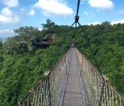 亚龙湾热带天堂森林公园是我们到达三亚后的第一个出发点,来的路上就已经在网上看了很多攻略推荐。每个景点都会有观光车接送去参观,观光车还挺有特色的半敞开式还可以看到美美哒风景、可惜车行途中不可以停车拍照。索桥有个烟波亭一定要去那里拍照、景色真的