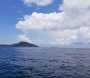 分界洲岛水清澈,真真的蓝色海洋,司机介绍分界洲岛非常适合潜水,这里的海水和蓝天一样明澈,阳光能毫无阻碍的射入十几米深的海里,这里有着丰富的海洋生态资源,海底世界的奇妙非得潜水领略才行。