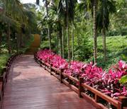 三亚亚龙湾热带天堂森林公园离亚龙湾加油站很近,主要分为三个部分,首先到达的是兰花谷,可以看见各种各样的兰花,比较有名的有石斛兰,蝴蝶兰,用半小时就可以转遍兰花谷,第二部分是过江龙索桥,也就是非诚勿扰里舒淇走过的地方,第三部分是山顶,有非诚勿