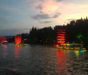 网上订的两江四湖门票,下午4点过有电话通知取票地点,到解放桥码头上船,6点40分的场,是按座位号坐的,可以上到甲板,也有专业导游,一路美景狂拍,桂林山水甲天下,夜晚美景更美啦,5个赞。