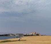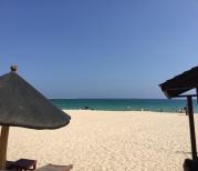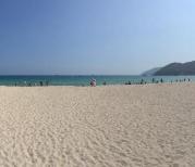 大东海确实高一档次,海更蓝,沙滩更干净,几乎没什么人。不过沙滩椅有人管理要收费,好像是100块随便躺,心疼钱没舍得,嘿嘿,没关系,我们就在旁边货架的阴影里坐着,吹着海风,无比惬意,有一种整个海都是属于我们的,包场的感觉,偶尔出去踩踩沙子和海