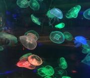 海洋之窗景区依次会经过海底世界,鱼类标本展厅,水下隧道,海洋资源,海上丝路,水母宫这几个区。设施看起来有点陈旧,没有中央空调,是用柜式机制冷,冷热分布不太均匀。孩子,孩子喜欢就是好的!