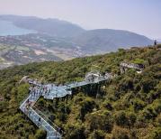 亚龙湾热带天堂森林公园的玻璃栈道虽然很不错,能看但海天景观,但是另外的门票价格有点高,而且人超多。游览车上到山顶后,可以沿着斜坡上到一座塔楼,高三层,可以眺望到亚龙湾全景,景色非常美丽。