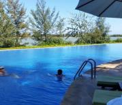 博鳌亚洲论坛永久会址的总面积为37000平方米,共分三层,博鳌亚洲论坛年会的主会场位于会议中心第2层。环境优雅,酒店高端大气,卫生服务一流!在泳池可以一览无余大海,很赞!个人觉得非常值得一游!