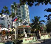 一到大东海这边,看商店都有俄语,估计俄罗斯游客常来,中午去俄罗斯餐厅吃饭。这里的海水这么脏,居然有人在这个位置潜水。大东海有一点最好,就是免费开放的海滨,不用门票。坐游艇不错,潜水不推荐,这里海水,沙子太多。