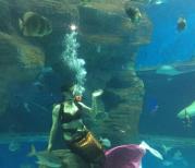 海洋之窗实还是蛮有趣的,不过观赏的玻璃有点花了,拍照的效果受到影响,摸摸鱼和给海龟喂食的活动很好玩,有二个潜水员在一个大水缸里与几条较大的鱼共游,下午的表演能吸引好多观众。