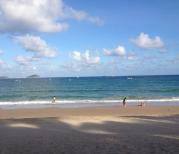 三亚湾度假区的蓝天白云的美得很,倒是要注意防晒哦,中午太阳还是有点毒的。卡纳的老板娘友好热情,办手续的时候有饮料和西瓜,瞬间感觉清凉无比。大厅还有台球桌,和各种沙滩鞋、帽子、小盆友的玩沙玩具提供,非常贴心。