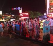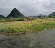 阳朔西街给我印象最深的就是他们的青芒,确实好吃,不贵,4~5块一斤,这个大芒果一斤差不多,很甜很好吃。我们一路吃着水果闲逛,看到很多买衣服的女子穿着自己要卖的衣服排成一排,像选美一样,吸取教训,这种只穿一次的衣服我们是头也不回呀。没什么好玩